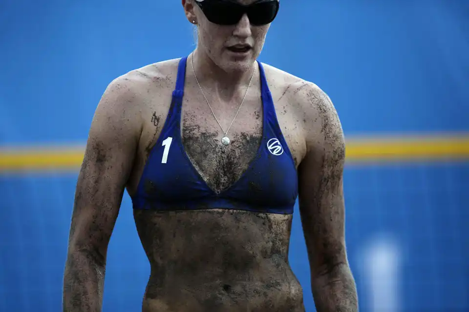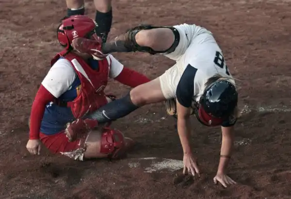 Молли Джонсон из США и Кристина Родригес из Венесуэлы в матче по софтболу в Гвадалахаре. Сборная США выиграла со счетом 10-0.