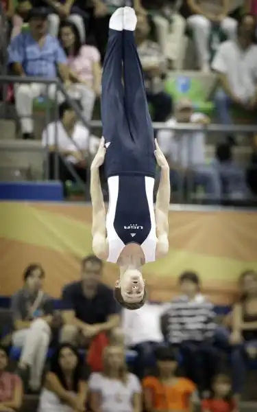 Джеффри Глюкштайн из США во время соревнования по художественной гимнастике среди мужчин.