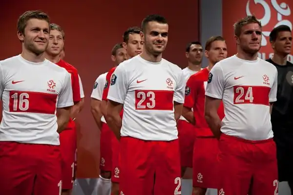 После презентации вратарь Войцех Щесный похвалил новую бело-красную экипировку. Он отметил, что отсутствие «орла» не повлияет на боевой дух футболистов. - Мы последовали примеру других европейских команд. Костюмы очень легкие и удобные, очень простой дизайн. Я еще не видел второго комплекта, надеюсь, что там нет розовых футболок, – полушутя прокомментировал вратарь.