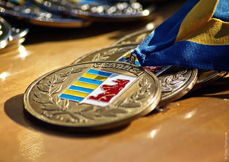 42. Кубки и медали были настолько красивы, что организаторы зазывали посетителей фотографироваться возле них вместе с детьми.