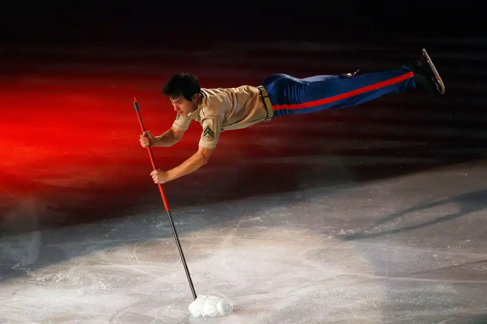 Патрик Чан из Канады убирает за собой после гала-выставки соревнования по фигурному катанию в Париже. (Francois Mori/AP)