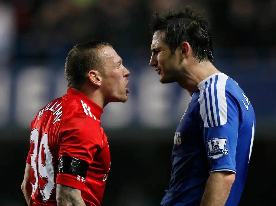 Крейг Беллами из «Ливерпуля» (слева) и Фрэнк Лампард из «Челси» флиртуют в матче английской Премьер-Лиги в Лондоне. (Ian Kington/AFP/Getty Images)
