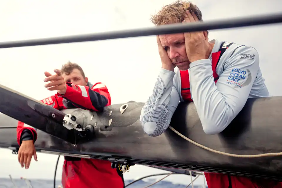 Шкипер Кен Рид (справа) расстроен тем, что на его судне сломалась мачта в гонке по Атлантическому океану. (Amory Ross/PUMA Ocean Racing/Volvo Ocean Race photo via AP Images)