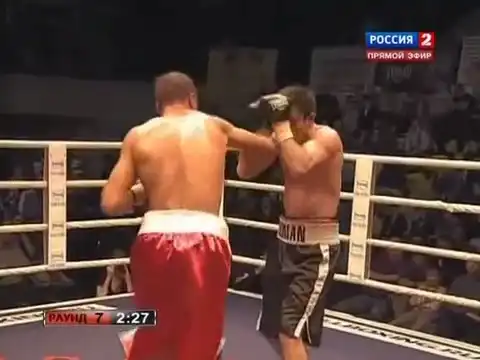 Седьмой раунд бой превратился в избиение, однако секунданты чемпиона не спешили выбросить белый флаг. Незадолго до окончания седьмого раунда Симаков пропустил страшный удар в голову. Боксер находился в глубоком нокауте и покинул ринг на носилках.