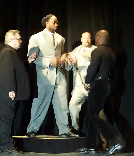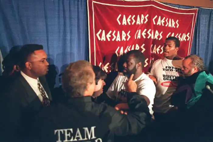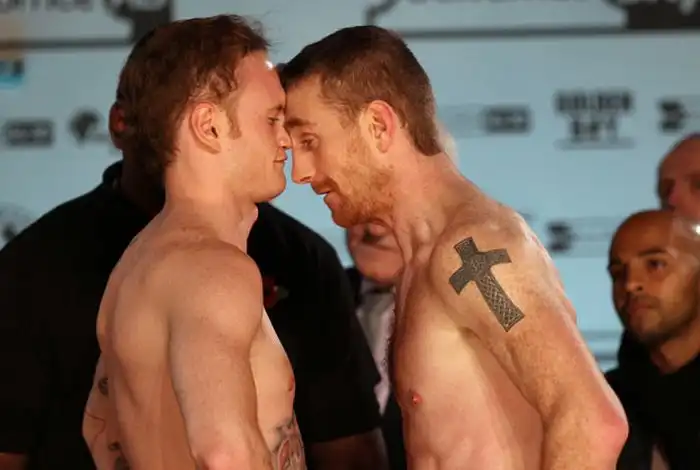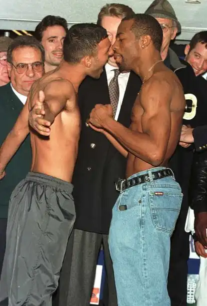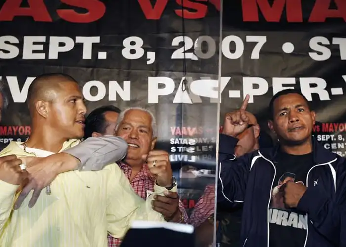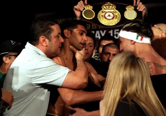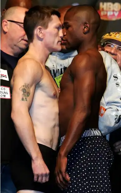 На взвешивании и пресс-конференции боксеры, которым предстоит драться на ринге, встречаются лицом к лицу.