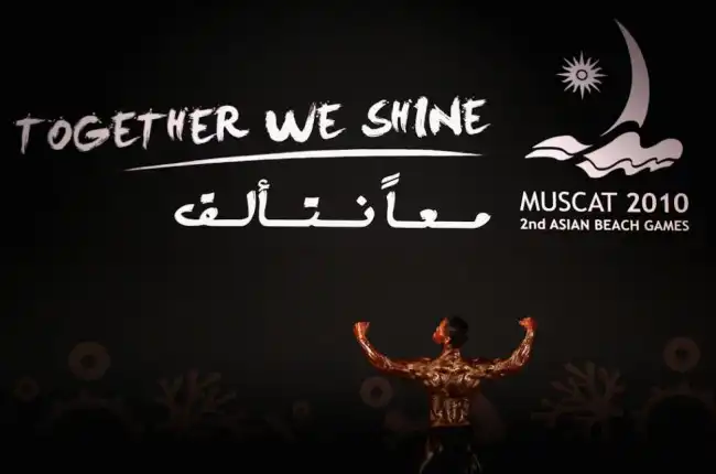 Бодибилдер в категории 65 кг, финал 2-х «Азиатских пляжных игр» в Мускате, Оман, 10 декабря 2010 года.