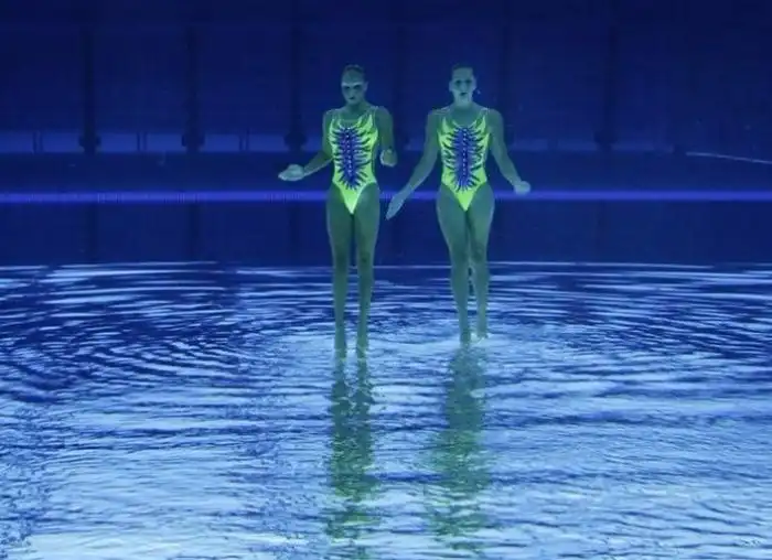 Интересный взгляд на банальное синхронное плавание с необычного ракурса.Весьма интересно.
