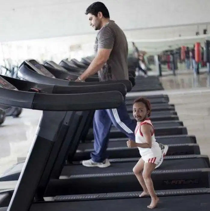 Он ежедневно тренируется на маленьких тренажерах, которые были изготовлены специально для него.Вес самого маленького бодибилдера составляет всего 10 кг.