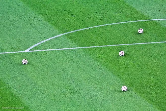 Минут за 10 до начала матча все уходят с поля и газон немного освежают.