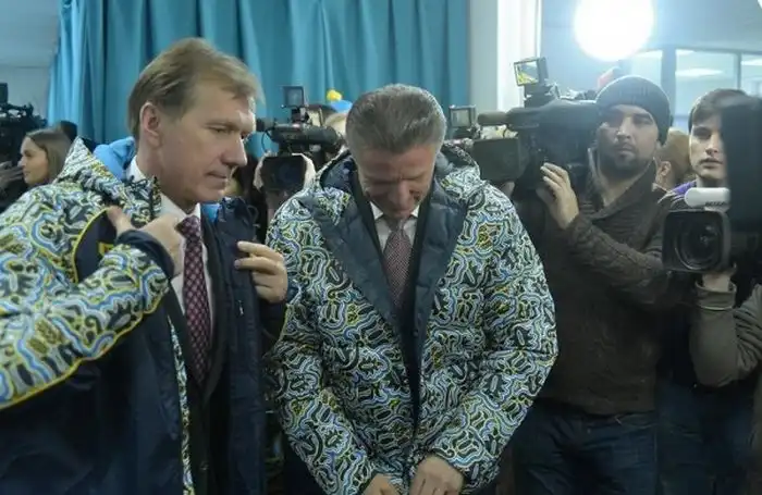 Эстонская форма. У них собаки в шествии будут важным элементов, как протест против зачистки Сочи от бродячих собак перед Олимпиадой.