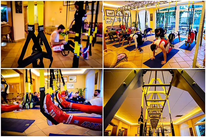 Помимо многочасовых шоссейных заездов обычно во время сборов проводятся тренировки в тренажерном зале. Во время последних сборов «Катюши» спортсмены занимались на TRX-петлях, используя работу с весом собственного тела.