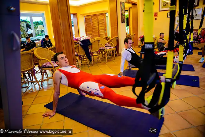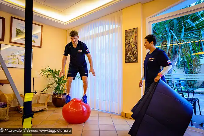 Но вот работать на TRX-сессиях приходится ударно – эти эффективные тренировки достаточно сложные и к тому же непривычные для спортсменов “Катюши”, ведь такую методику команда практиковала впервые.