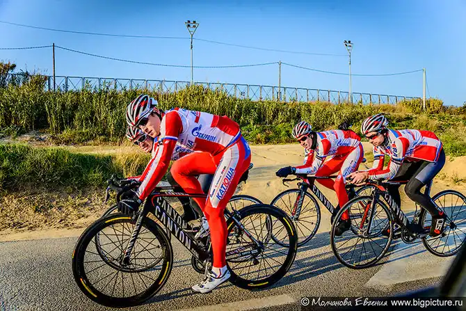 Во время сборов гонщикам “Катюши” дают возможность как отрабатывать элементы командной гонки, так и тренироваться ездить в одиночку.