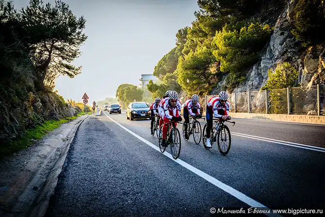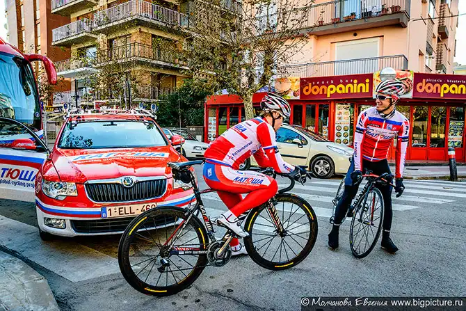 У отеля в небольшом курортном городке Калелья (в 50 километрах от Барселоны) рядами выстроились гоночные велосипеды. Вся гостиница зарезервирована исключительно для спортсменов, персонала и руководства команды. Все десять дней тут идет напряженная и плодотворная работа – многочасовая подготовка, различные тесты, обсуждения стратегии в грядущем сезоне, интервью с представителями команды, и конечно тренировки, тренировки, тренировки.