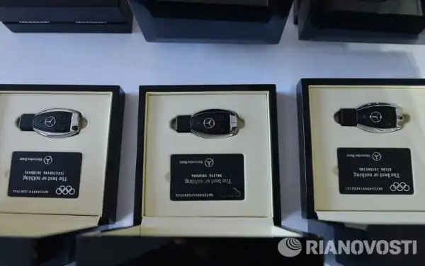 В качестве подарка в этом году олимпийцы получили дорогие автомобили "Мерседес". За "золото" чемпионы - ключи от внедорожника класса GL стоимостью от 5 млн 300 тыс. руб. Серебряные призеры - машины класса ML стоимостью от 3 млн 60 тысяч, а бронзовые - "Мерседесы" класса GLK стоимостью от 2 млн 150 тысяч рублей.