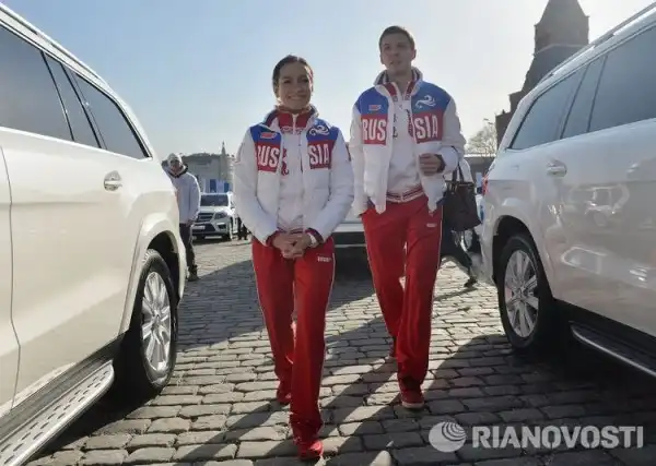 За 33 медали, завоеванные российской сборной на Олимпиаде в Сочи, спортсмены получили 45 новеньких "Мерседесов". Автомобили выставили на Васильевском спуске, на каждом красовались не безликие цифры и буквы номера, а таблички "Сборная России" с фамилиями и именами новых владельцев.