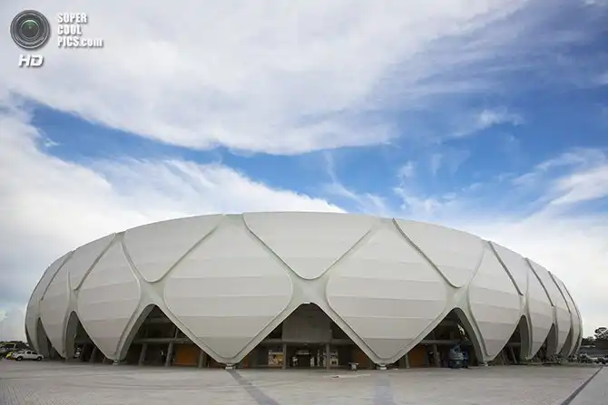 Бразилия. Куяба. 25 апреля. Футбольный стадион «Арена Пантанал», на территории которого состоится 4 матча чемпионата мира по футболу 2014 года. Вместимость: 42 968 человек.