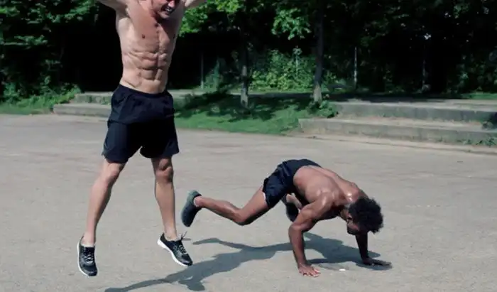 Один из лучших типов тренировок — тренировка с партнером. Установите соревновательный темп и вы увидите, как не хочется отдать ни одного очка даже лучшему другу. В качестве упражнений подойдет стандартная сцепка отжимания-подтягивания-пресс, выполняемая комплексно, с короткими перерывами между подходами.