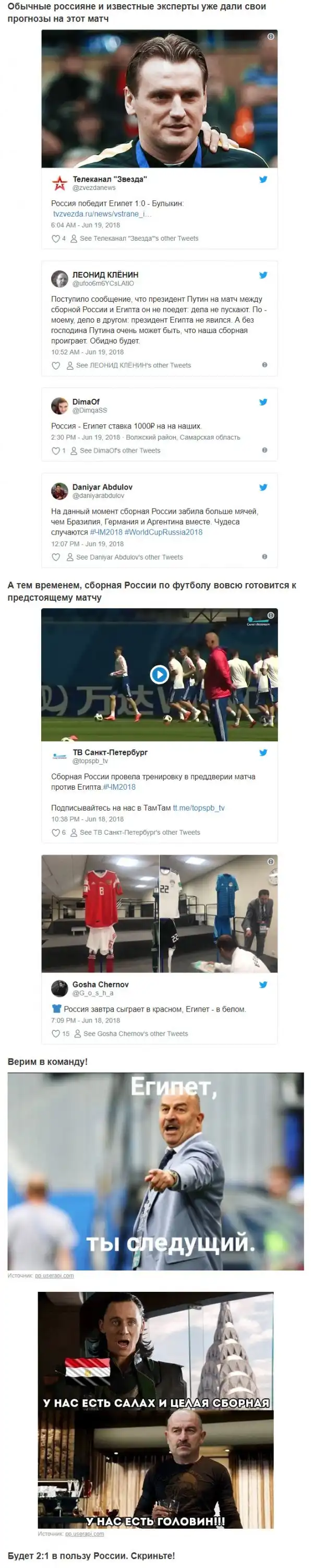 У Игнашевича травма, у Салаха русская родня: прогноз соцсетей на матч Россия - Египет