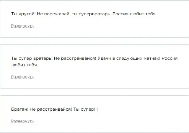 "После матча произошло безумие! Я не считал, сколько сообщений мне пришло, но кажется, что их больше четырёх тысяч", - сказал вратарь.