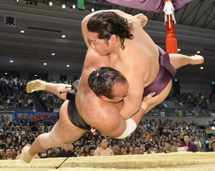 2. Сумо — очень травмоопасный вид спорта. Стартовый контакт — это столкновение двух в среднем 155-килограммовых борцов с совокупной скоростью 50–60 км/час. По травмам на первом месте колени, затем локти, спина и шея, голеностопы и пальцы.