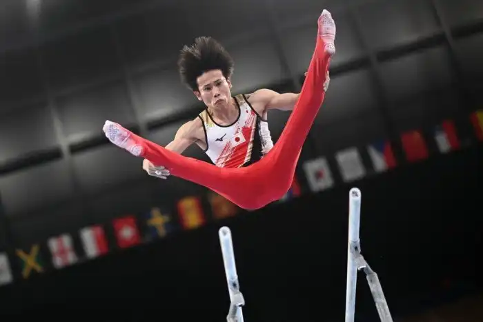 А Казума Кая (Япония) создал не только идеальную букву V на брусьях, но и лицо для мемов