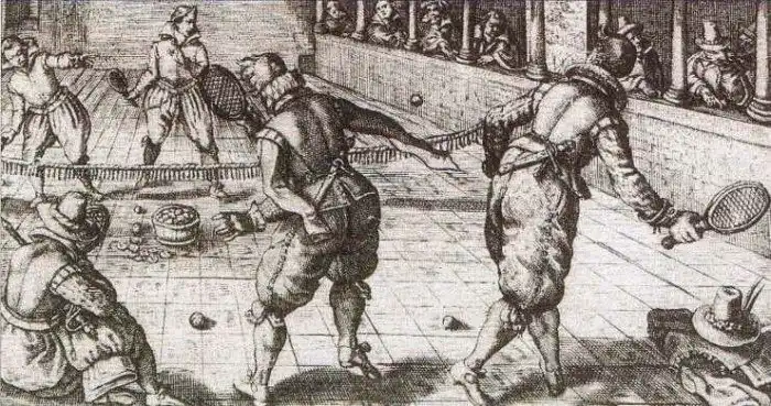 Этот счет – наследие старинных правил прародительницы современного тенниса, изобретенной примерно в 12-13 веке французскими монахами забавы под названием «игра ладонью» (жё-де-пом - jeu de paume). В этой игре нужно было ударами перебрасывать через натянутую сеть или веревку кожаный мяч, пока соперник не ошибется и не пропустит удар, либо ударит не туда.