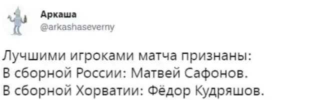 Позор сборной России, которая не смогла удержать ничью в матче со сборной Хорватии, обсуждают уже который день. Винят Федора Кудряшова, плохую игру, поле... И шутят, что мы можем не попасть на главное спортивное событие 2022 года.