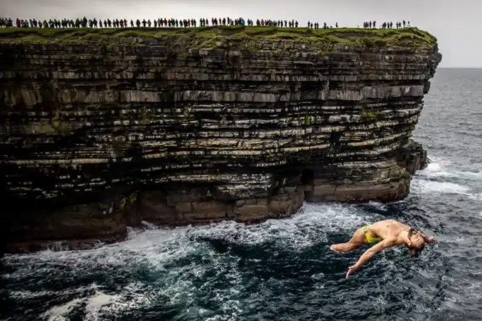Пловец Каталин Преда ныряет с 27,5-метровой платформы на мировой серии Red Bull Cliff Diving.