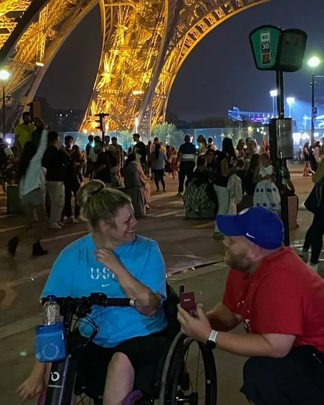 7. Американская лучница Трейси Отто приняла предложение руки и сердца от своего партнера Рики Риссла под Эйфелевой башней после соревнований