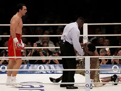 Владимир Кличко защитил титул чемпиона мира по версиям IBF/IBO в бою против Леймона Брюстера из США. Оппонент украинского боксера отказался продолжать поединок после шестого раунда. В субботу в Кельне чемпион мира по версиям IBF/IBO украинский тяжеловес Владимир Кличко проводил защиту своих титулов против бывшего чемпиона Леймона Брюстера. Кроме всего прочего, эта встреча рассматривалась как матч-реванш после поединка, состоявшегося в 2004 году, когда Кличко проиграл Брюстеру техническим нокаутом в пятом раунде, потеряв при этом титул чемпиона WBO.
