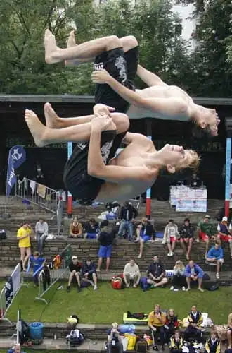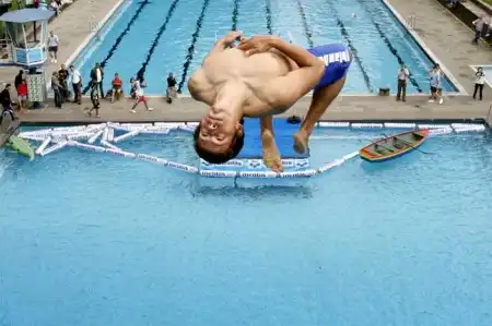 Такой чемпионат в Германии проводят уже второй раз. В этом году за Кубок мира по брызгам во время ныряния соревновались представители разных стран мира - Германии, Австрии, Австралии, Швейцарии, Филиппин и Соединенных Штатов.