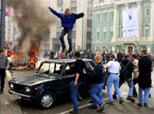 Самые нашумевшие беспорядки - погром на Манежной площади в июне 2002 года. Тогда на Чемпионате мира сборная России проиграла Японии и не смогла выйти из группы. Разъяренные поражением молодые люди переворачивали и жгли машины прямо перед Госдумой и в двухстах метрах от Кремля. В результате беспорядков погибли два человека. В московских околофутбольных фирмах говорят, что "настоящие хулиганы в тех беспорядках не участвовали".