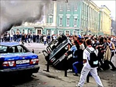 Российские "околофутбольники" не хотят, чтобы против них приняли специальные - аналогичные британским - законы, нарушители которых быстро бы оказались в тюрьмах. Драки с милицией на российских стадионах последние годы не случаются…Но в 1990 годы было жарко…
