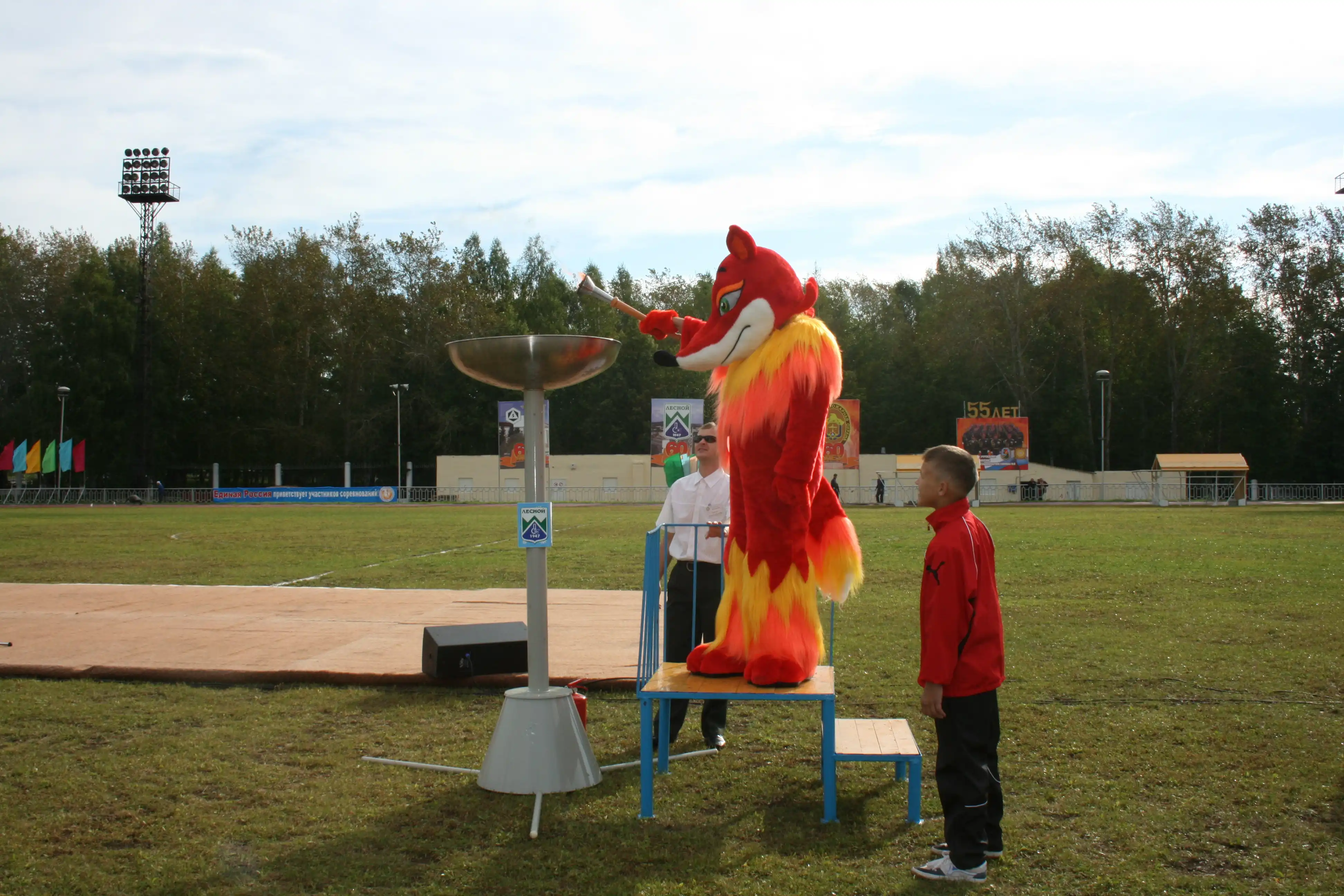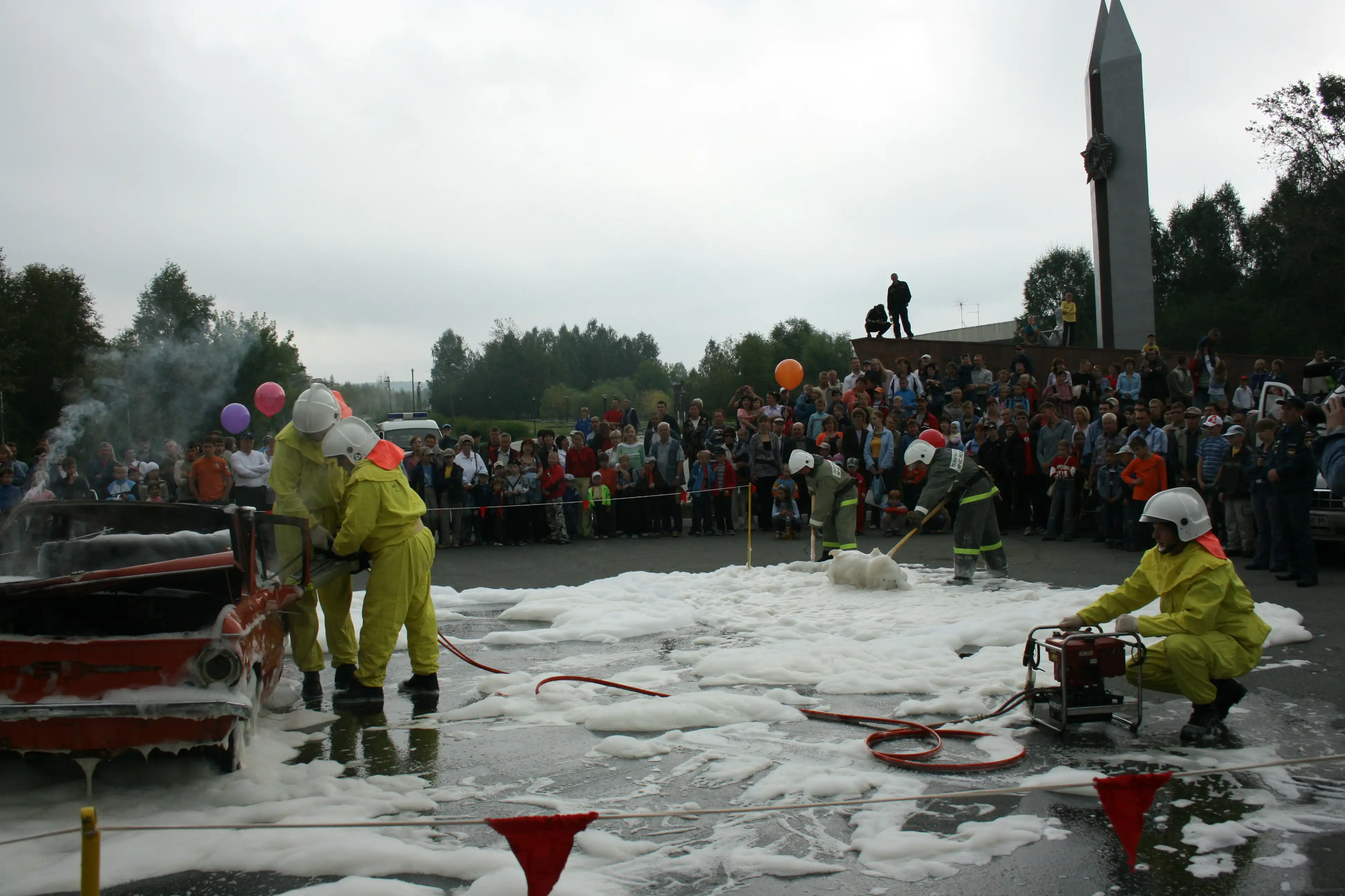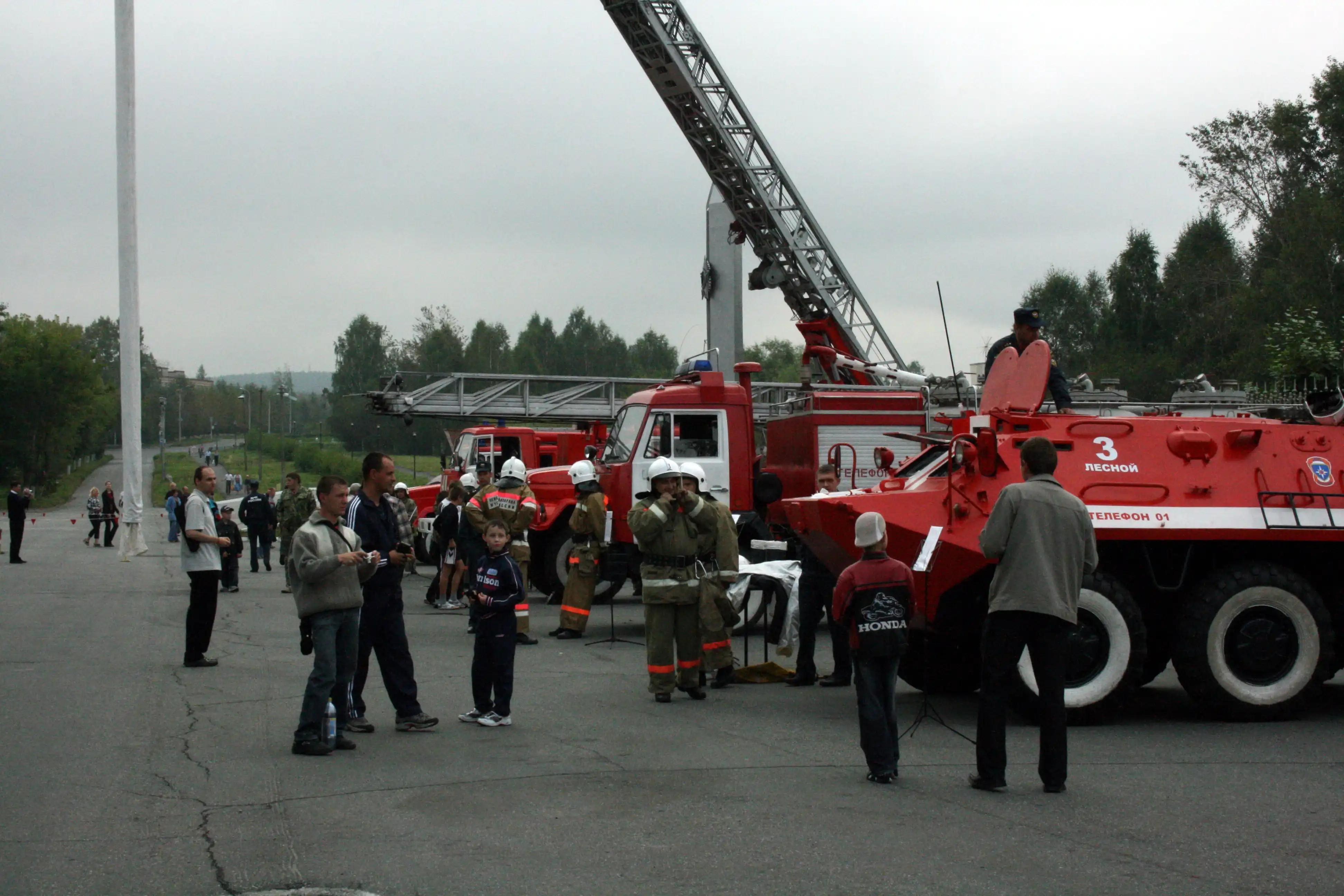После парада и торжественного открытия Всероссийских соревнований пожарные г. Лесной организовали смотр техники и вооружения, а также показательнее тушение небольшого пожара.