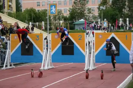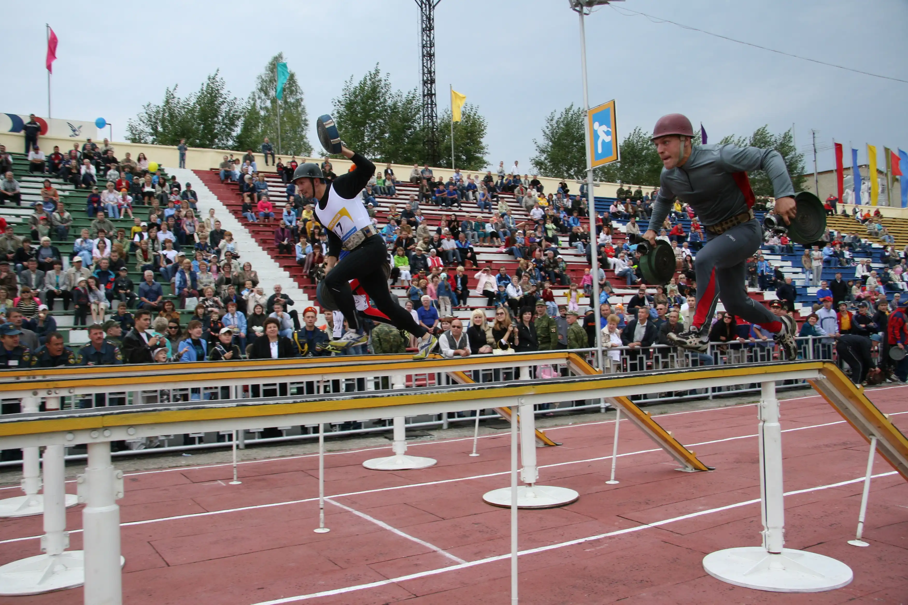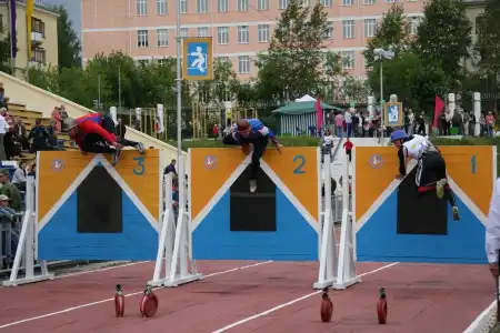 Спортсмены стартуют за 23 м до первого препятствия - импровизированный забор.