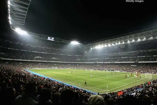 «Сантьяго Бернабеу», в прошлом столетии являвшийся крупнейшим стадионом Испании. Его история насчитывает более полувека, за которые он пережил всего четыре реконструкции. Первая из них, вызванная огромным наплывом публики и постоянным дефицитом свободных мест, была произведена в 1954 году, вторая – в начале 80-х, когда Испания прихорашивалась в ожидании Мундиаля. В 1990 году были сооружены все 4 угловые башни, через которые производится проход зрителей внутрь, и только в конце 90-х под нажимом УЕФА с трибун убрали все стоячие места, и вместимость сократилась со 106,5 тысячи до 80,2.