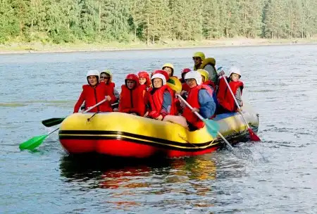 стартует команда любителей весеннего загара на сплав по Томи: Юрга (Тутальские скалы) – Томск.Наша флотилия – рафт, два катамарана, два парусных катамарана, три байдарки.