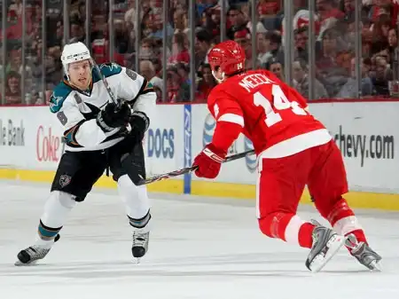 Безусловно, с самого начала матчей на вылет никто не рассматривал «Шаркс», как достойных конкурентов. Тем более, после известия о том, что в первом раунде их визави станут хоккеисты «Детройта», занимавшие в сетке «Запада» высшую ступень, на Константина и Ко никто не ставил и ломанного гроша. Однако, 30 апреля Северная Америка отказывалась верить в произошедшее: в 7 решающем матче 1/8 финала Кубка Стэнли «Сан-Хосе» ставит крест на кубковых мечтах «Ред Уингз». За 6 с половиной минут до конца заключительной трети при скользком равновесии 2:2 центрфорвард «Шаркс» Джейми Бейкер склоняет чашу весов в пользу своих партнеров по команде. Счет 3:2 не изменился вплоть до финальной сирены, и дороги «Уингз» и «Шаркс» разошлись в разные стороны.