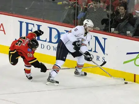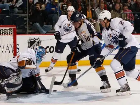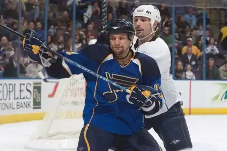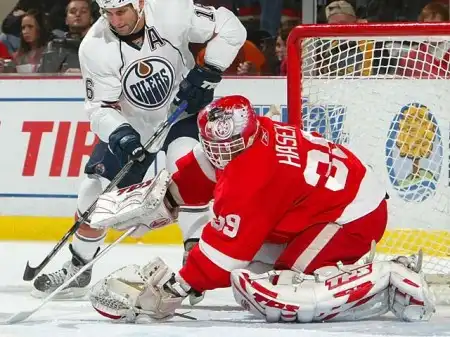А через год дуэль не состоялась. Причина? Просто оба клуба…не попали в плей-офф. В межсезонье «Ойлерз» понесли очередную тяжелую утрату, вызванную неспособностью канадцев тягаться с американцами в финансовом плане – потянуть требуемый Уэйтом 9-миллионный контракт им было не под силу. Состоялся вынужденный обмен с «Сент-Луисом», главными действующими лицами которого стал 39-й номер «Эдмонтона» и «Блюзмены» - форварды Йохен Хехт и Марти Ризонер. Несмотря на потерю, «Нефтяники» выдали практически идентичный предыдущему регулярный чемпионат 2001/02, набрав лишь на 1 пункт меньше. Уэйта в первом звене блестяще заменил 21-однолетний Комри, избежавший «кризиса второгодника» - напротив, Майк значительно прибавил во многих компонентах хоккея и, удачно сочетая эффектность игры с эффективностью, набрал 60 очков, попутно став лучшим снайпером команды (33 гола). Для Райана Смита чемпионат оказался скомканным из-за перелома ноги, полученного осенью, что, впрочем, не помешало левому крайнему принять участие в Олимпиаде в Солт-Лейк-Сити и завоевать в составе канадской сборной золотые медали. К слову, другим представителем «Эдмонтона» в команде страны Кленового Листа оказался молодой защитник Эрик Брюэр, добившийся поразительного прогресса за те два года, что он провел в «Ойлерз» с момента трейда с участием Романа Хамрлика, ушедшего в «Айлендерс». Наряду с Нинимаа Брюэр стал столпом обороны, потеснив Тома Поти, потерявшего уважение болельщиков после своей забастовки по поводу нового контракта. Практически на каждом домашнем поединке зрители устраивали обструкцию Поти, который под таким психологическим прессом потерялся и значительно сбавил в активности. Ну что такое 17 очков (1+16) для хоккеиста, которому предрекали звездную карьеру и сравнивали по потенциалу с Брайаном Личем? Уход Тома назревал, и за несколько часов до «дэдлайана» представители «Рейнджеров» и «Нефтяников» ударили по рукам: Поти отправился в Нью-Йорк за компенсацию в лице 22-летнего форварда Майкла Йорка, ставшего открытием чемпионата 2001/02. Однако в «Эдмонтоне» в оставшихся 11 матчах Йорк на свой уровень не вышел, а отлично спуртовавшие в концовке «Ванкувер» и «Финикс» лишили конкурента радостей Кубка Стэнли.