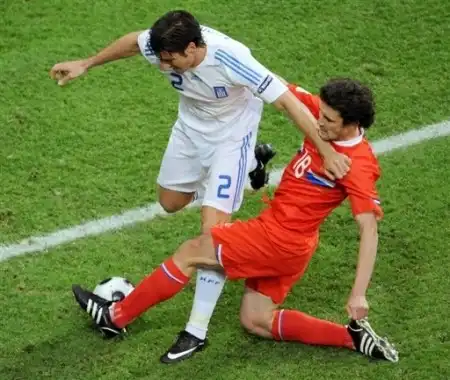 Гимн России эхом отгремел над зальцбургским стадионом (право слово, болельщики пели настолько проникновенно, что замирало сердце), как началась игра. Футболисты российской сборной начали поединок активнее, чем соперник. Впрочем, к этому нам не привыкать, в первые минуты встречи с испанцами наши футболисты тоже выглядели поинтереснее. Как и в той игре, выделялся Юрий Жирков, подключившийся к атаке своей команды уже на второй минуты. Полузащитник сборной России получил мяч перед чужой штрафной, ворвался во вратарскую, где за счeт индивидуальных действий попытался обыграть сразу трeх оппонентов - не удалось. Несмотря на то, что небольшим преимуществом владели именно россияне, в действиях которых было гораздо меньше суеты, чем в первом матче, опасные моменты у ворот седовласого Никополидиса возникали редко. Навесные передачи на Романа Павлюченко были абсолютно бесполезны, ибо центральные защитники сборной Греции отменно играют "на втором этаже" - особенно это касается высоченного Сотириса Кириякоса. А с комбинационной игрой у нашей сборной всe же возникали проблемы. Не сказать, что подопечные Отто Рехагеля играли строго от обороны, однако пройти редут перед воротами эллинов было весьма непросто. Хорошо, что и сами греки не очень представляли, как атаковать соперника.