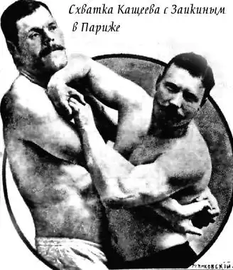 Выступления Кащеева пользовались огромным успехом, но все чаще и чаще он говорил: "Нет, уйду из цирка. Вернусь домой, землю пахать буду". В1906 году он впервые встретился с борцами мирового класса. Подружился с Иваном Заикиным, который помог ему выйти на большую арену. Вскоре Кащеев кладет на лопатки многих именитых силачей, а в 1908 году вместе с Иваном Поддубным и Иваном Заикиным едет на всемирный чемпионат в Париж. С победой возвратились наши богатыри на родину. Кащеев занял призовое место. Казалось бы, что теперь и началась настоящая борцовская карьера Кащеева, но он все-таки бросил все и уехал к себе в деревню пахать землю.