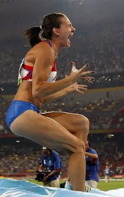 С третьей попытки Еленой была взята высота 5,05! Мало того, что олимпийское золото взяла, так еще и мировой рекорд побила.