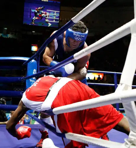 Рахим Чахкиев в полуфинальном бою в категории до 91 кг заставил поваляться на ринге кубинца Осмая Акосту.
