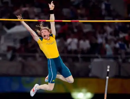 Австралиец Стивен Хукер брал почти все высоты с третьей попытки. Он мог рано вылететь из борьбы за награды, но постоянно спасался чудесным образом. И заслужил золото, выиграв с новым олимпийским рекордом – 5,96.