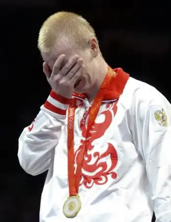 Алексей Тищенко плачет на пьедестале. Второе золото далось ему с трудом.