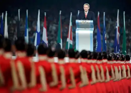 Президент МОК Жак Рогге торжественно объявляет Игры XXIX Олимпиады в Пекине закрытыми.