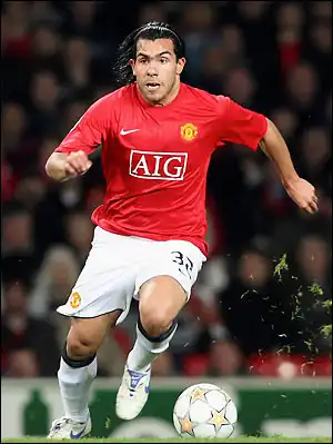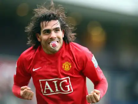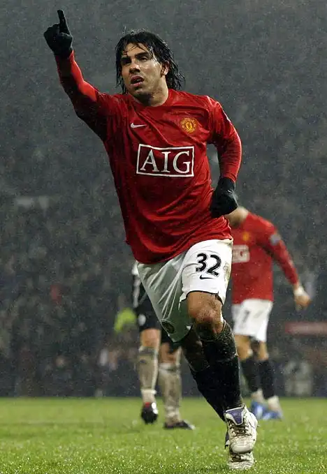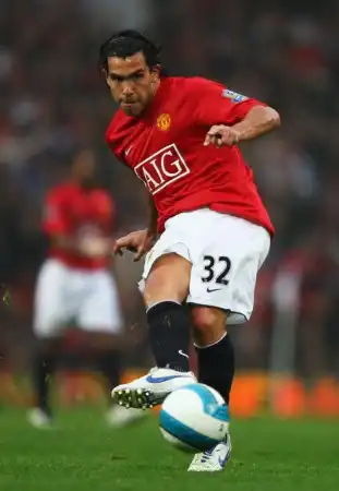 Тевес вбрасывает мяч из аута.Уже через пять дней, 15 августа 2007 года аргентинец дебютировал за «Юнайтед», выйдя на замену в матче против «Портсмута». В этой игре он отметился голевой передачей на Пола Скоулза, что позволило сделать итоговый счёт матча 1–1. Свой первый гол за «Юнайтед» Тевес забил 23 сентября 2007 года в победном домашнем поединке против «Челси».