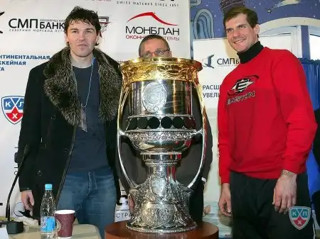 На пресс-конференции с участием Владислава Третьяка, Владимира Шалаева, Игоря Ларионова, Алексея Яшина и Яромира Ягра был представлен 17-килограммовый Кубок Гагарина. За этот кубок будут бароться 16 лучших команд КХЛ вышедшие в плей-офф!