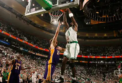 На протяжении всей карьеры Гарнетта называют "The Kid", то есть ребенок, мальчишка. Это прозвище привязалось к Кевину очень давно, и оно ему, в общем, всегда льстило. Однако сейчас как-то язык не поворачивается назвать такого человека, сделавшего так много за свою жизнь, мальчишкой. Гораздо более подходящее другое имя. Известный американский автор Скуп Джексон в журнале "Hoop Magazine" двухмесячной давности озвучил более точное прозвище: "The Man" - Мужчина. И с ним трудно не согласиться. Хотя в дебютный год в НБА Гарнетт был действительно мальчиком среди профессионалов. Стоит взглянуть на фото тех лет: перед нами улыбчивый, худосочный парень, только пришедший в большой баскетбол со школьной скамьи, кстати, в последний раз такое случалось в далеком 1975 году, и делающий первые шаги в НБА. Но, несмотря на свои 19 лет, обладающий уже большим жизненным опытом. Татуировка Кевина "Кровь, Пот и Слезы" - как отражение его характера и судьбы. Гарнетт, как и многие чернокожие спортсмены, все детство провел в бедности и безнадежности. Он вырос в Южной Каролине, в опасном квартале, мимо которого всякий более-менее обеспеченный американец побоялся бы пройти. Настоящего своего отца он не знал, так что приходилось мириться с каждым новым приемным. Приходилось и работать с тринадцати лет, то грузчиком, то мойщиком машин. Приходилось заботиться о семье. Однажды пришлось взять на себя опекунство своей младшей сестры, то есть, фактически, стать для нее отцом. И это еще до того, как он пошел на свое первое свидание. Он был вынужден быть ответственным. Будущее выглядело тогда безрадостно. Единственным выходом был баскетбол. Гарнетт оставил свой дом и переехал в Чикаго, чтобы окончить там школу. Он провел один год в "Farragut Academy" и благодаря своей игре стал знаменитым. Его назвали лучшим баскетболистом года среди школьников, и только одним возможным выбором для него оставалось начало профессиональной карьеры, минуя колледж, чтобы обеспечить себя и свою семью. На драфте 1995 года Кевин Гарнетт был выбран под пятым номером "Миннесотой". И хотя ему не удалось сразу стать звездой, как, например, ЛеБрону 8 лет спустя, Кевин оказался очень важным игроком для "Тимбервулвз" и побил клубный рекорд по блокшотам за сезон, накрыв броски соперников 131 раз (1,64 в среднем за игру). С этих пор, Гарнетт стал очень быстро прогрессировать и улучшать свои статистические показатели в каждом сезоне. Во второй год выступлений в НБА он уже был игроком стартовой пятерки своей команды, а в феврале попал на "Матч Всех Звезд". В межсезонье Кевин подписал с "Миннесотой" рекордный контракт в 121 (+5) миллион долларов, который, впоследствии, косвенно повлиял на объявление Ассоциацией локаута. Продолжая хорошую традицию отдуваться на площадке за всю команду, Гарнетт забивает, подбирает, отдает передачи, накрывает броски и перехватывает мячи в каждом матче вот уже девятый год подряд. За это время он семь раз поучаствовал в "Матчах Всех Звезд", в 2003 году став MVP встречи "Запада" и "Востока", шесть раз был включен в символическую сборную "All-NBA" и пять раз в пятерку лучших защитников. В 2000 году был олимпийским чемпионом в Сиднее. В этом году его баскетбольная биография пополнилась еще рядом разных достижений. В первую очередь, это, конечно, MVP регулярного сезона. Во-вторых, Гарнетт составил пару Лэрри Берду, как единственному игрок